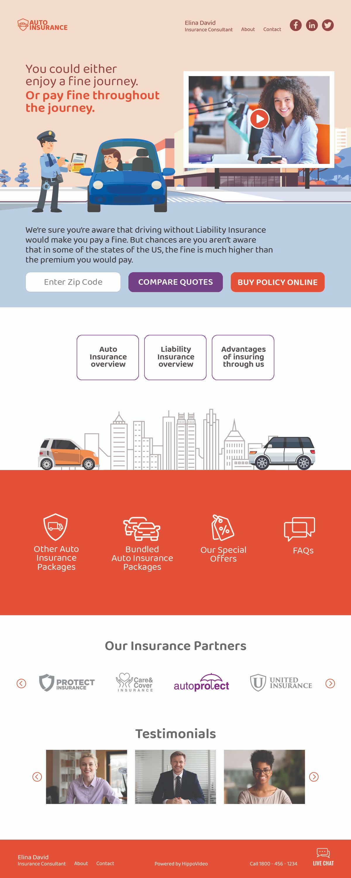 Targeted customers can compare quotes from other companies either on the landing page itself or your website via a link. A dynamic video on the page provides an overview of auto and liability insurance, along with highlighting the USPs of buying insurance from you or your company.